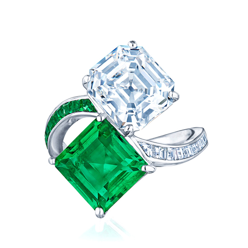 Sotiya Toi et Moi Bypass Asscher Cut Two Stone Engagement Ring Sterling Silver