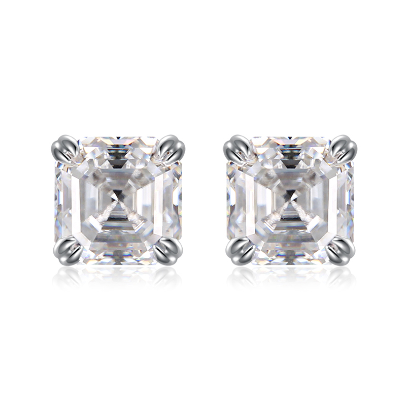 Sotiya Solitaire Asscher Cut Moissanite Stud Earrings Sterling Silver