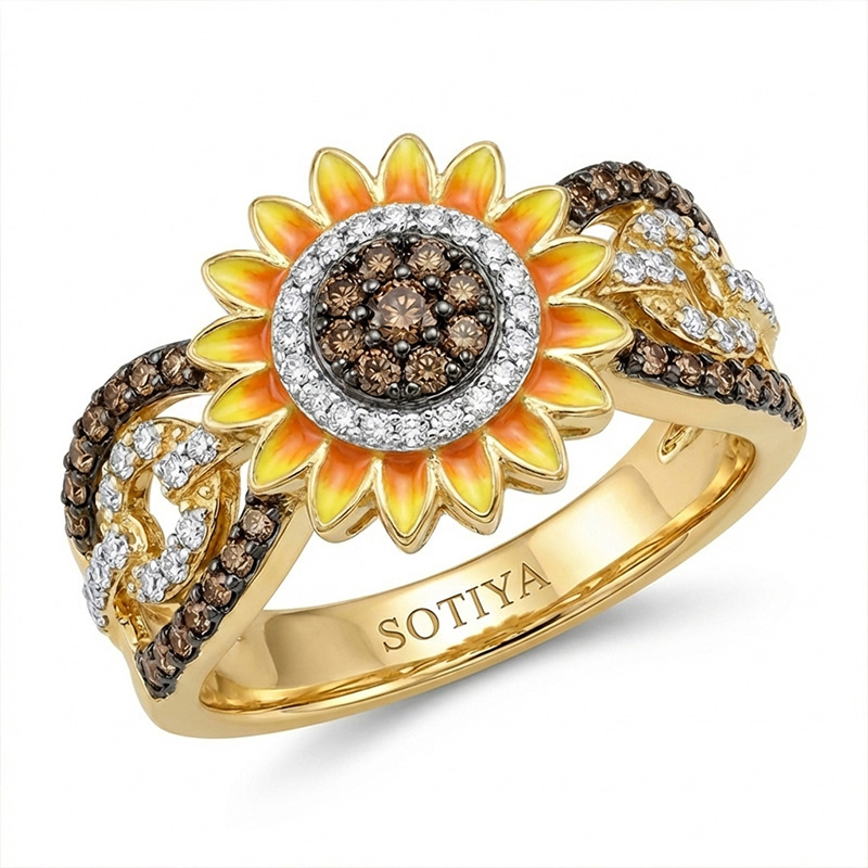 Sotiya Artist Collection Coffee Sunflower Cocktail Ring Sterling Silver