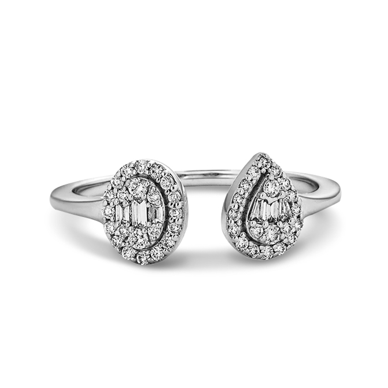 Sotiya Toi et Moi Oval and Pear Shaped Halo Cocktail Ring Sterling Silver