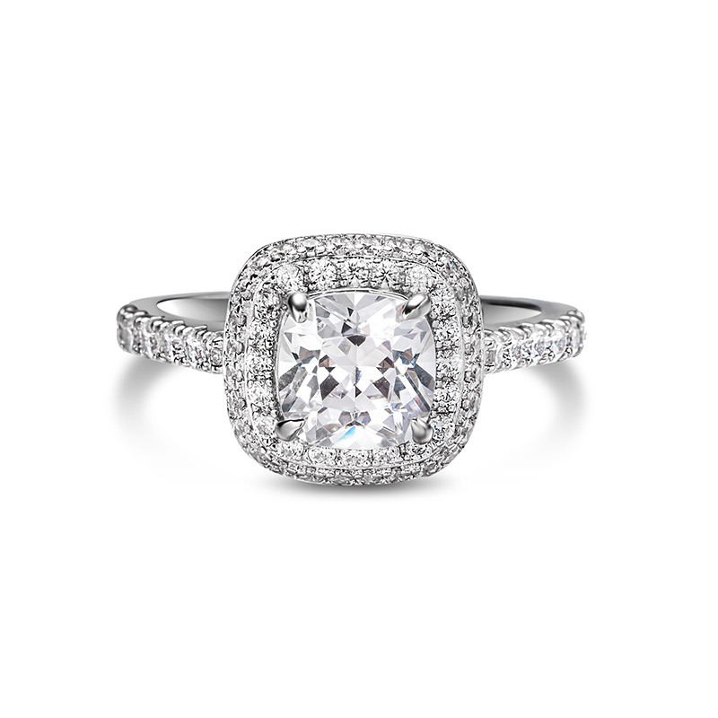 Sotiya Two Halo Cushion Cut Engagement Ring Sterling Silver