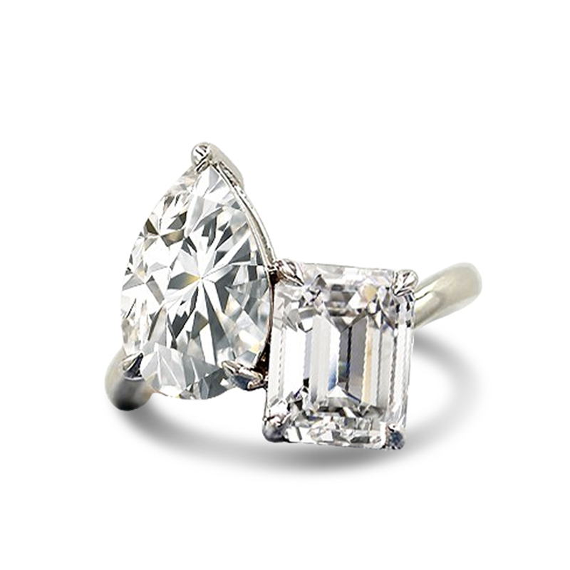 Sotiya Personalized Toi et Moi Emerald and Pear Cut Two Stone Engagement Ring