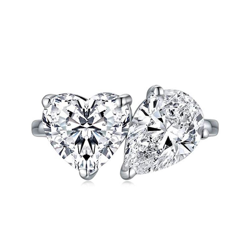Sotiya Toi et Moi Heart and Pear Cut Two Stone Engagement Ring Sterling Silver