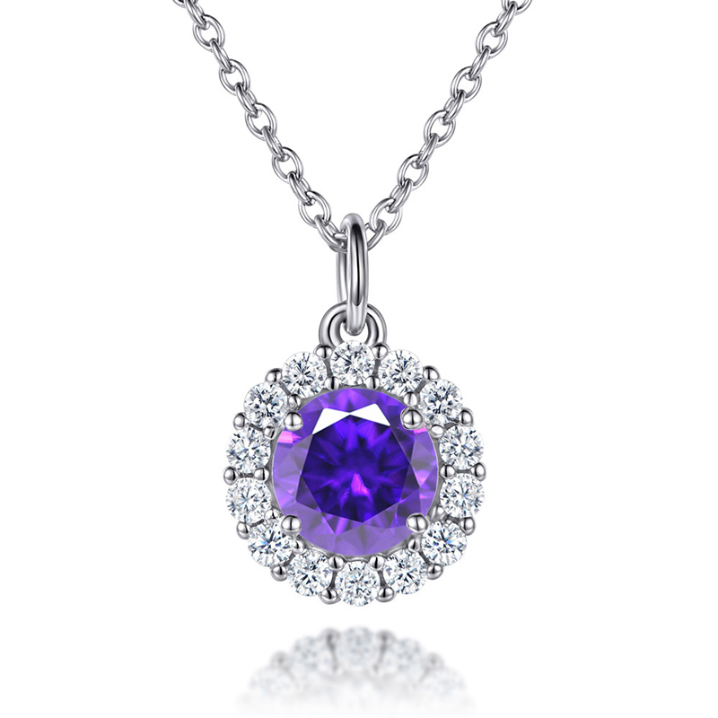 Sotiya 12 Birthstones Halo Round Cut Necklace Sterling Silver