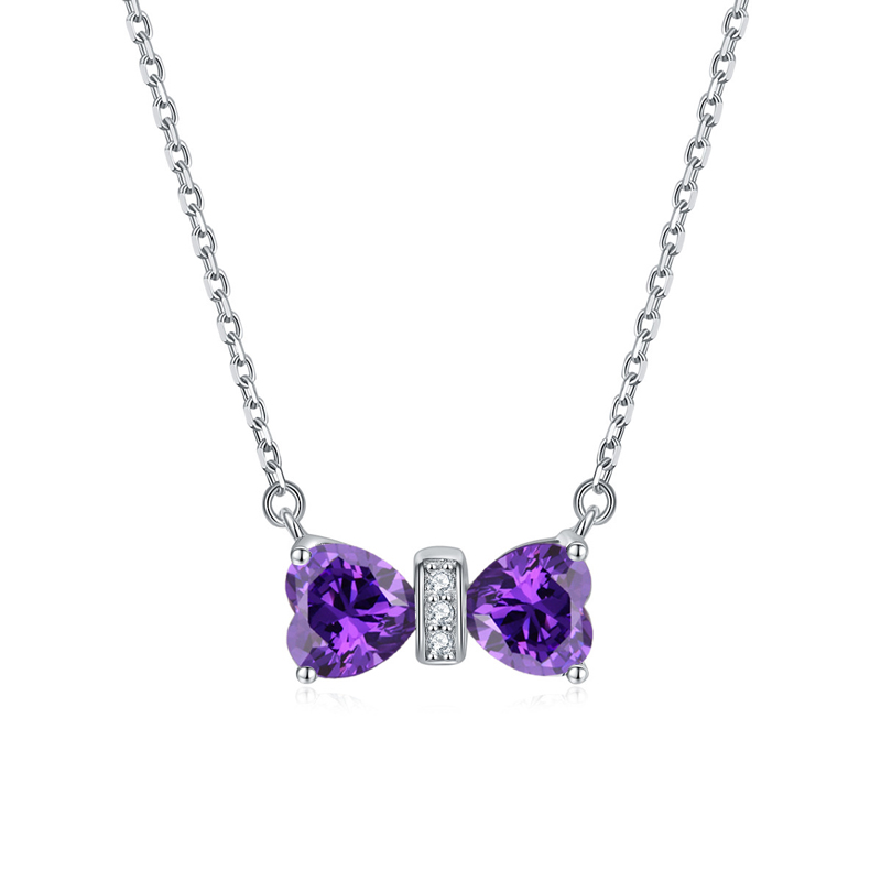 Sotiya 12 Birthstones Bowknot Design Heart Cut Necklace Sterling Silver