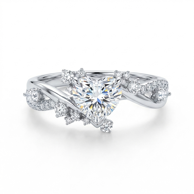 Sotiya Twist Shank Sidestone Heart Cut Engagement Ring Sterling Silver