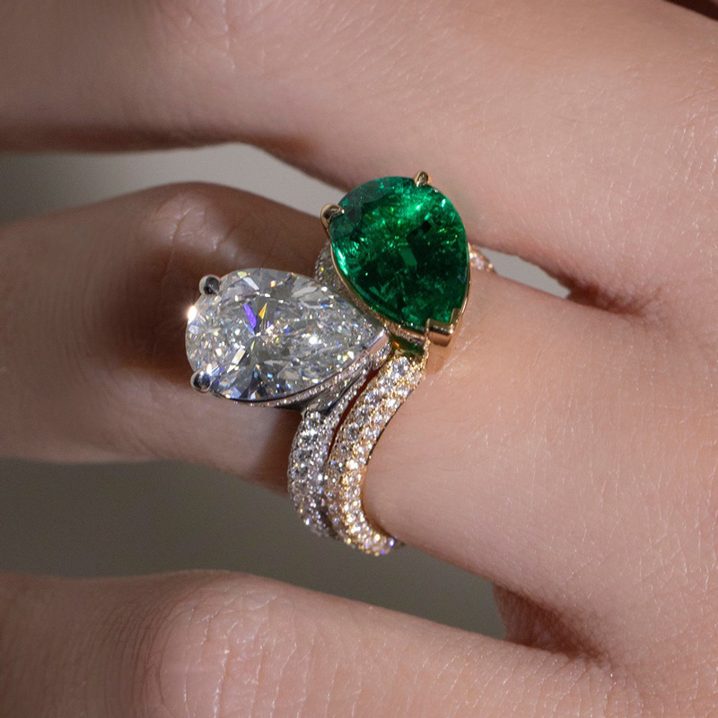 Sotiya Toi et Moi Stackable Pear Cut Engagement Ring Set Sterling Silver