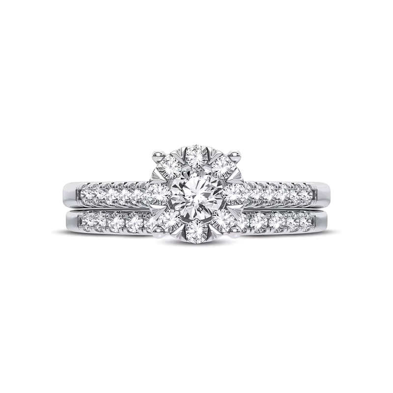 Sotiya Halo Round Cut Wedding Bridal Ring Set Sterling Silver