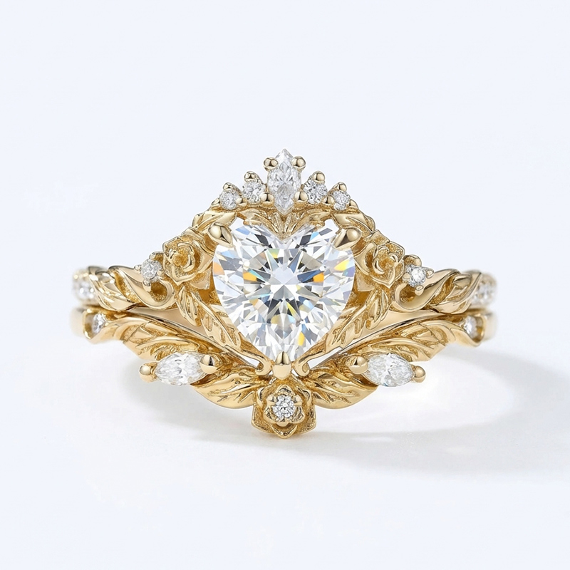 Sotiya Nature Inspired Heart Cut Moissanite Wedding Bridal Ring Set Sterling Silver