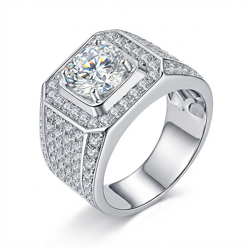 Sotiya Halo Round Cut Moissanite Men's Wedding Ring Sterling Silver