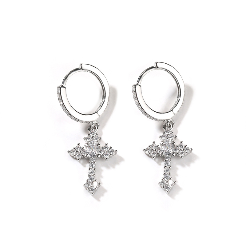 Sotiya Cross Design Faith Men's Drop Earrings Sterling Silver