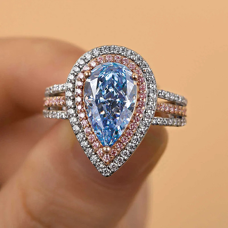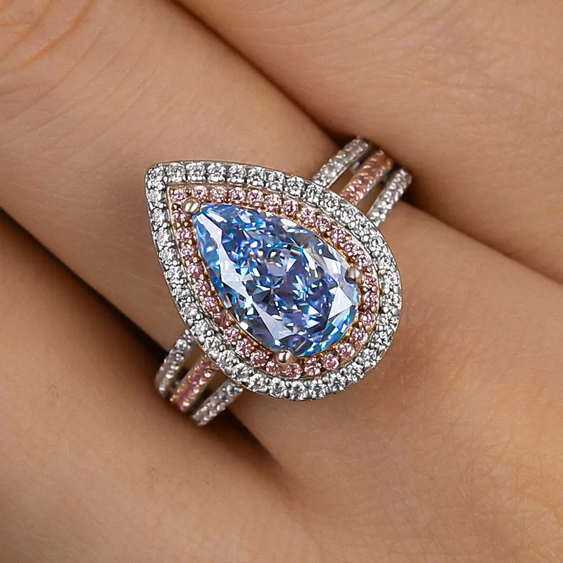 Sotiya Two Halo Pear Cut Engagement Ring High-carbon Zircon Sterling Silver