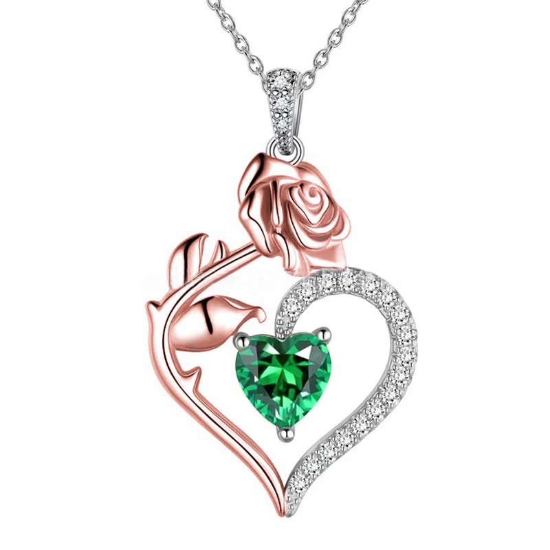Sotiya 12 Birthstones Heart Rose Round Cut Necklace Sterling Silver
