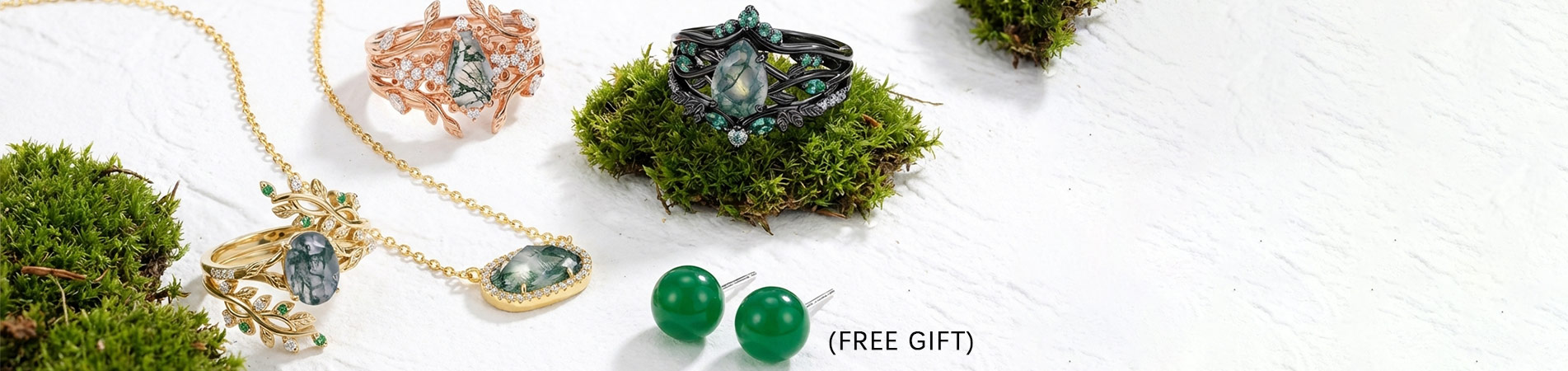 Sotiya Nature Inspired Round Cut Green Moss Agate Wedding Bridal Ring Set Sterling Silver