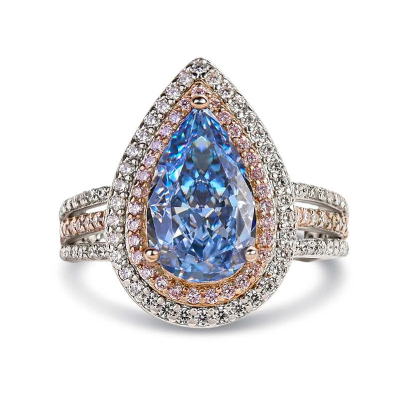Sotiya Two Halo Pear Cut Engagement Ring High-carbon Zircon Sterling Silver
