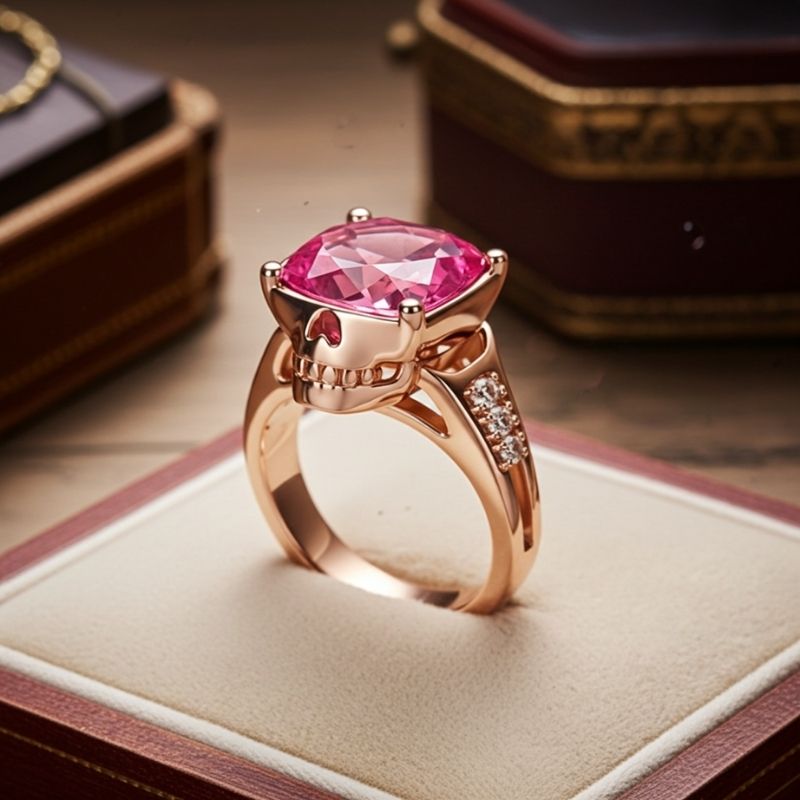 Sotiya Gothic Skull Cushion Cut Hot Pink Cocktail Ring Sterling Silver