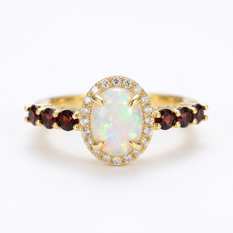 Sotiya Halo Oval Cut Opal Coffee Engagement Ring Sterling Silver