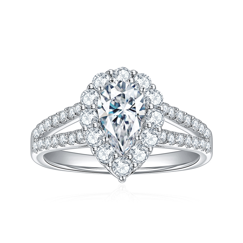 Sotiya Halo Split Shank Pear Cut Moissanite Engagement Ring Sterling Silver
