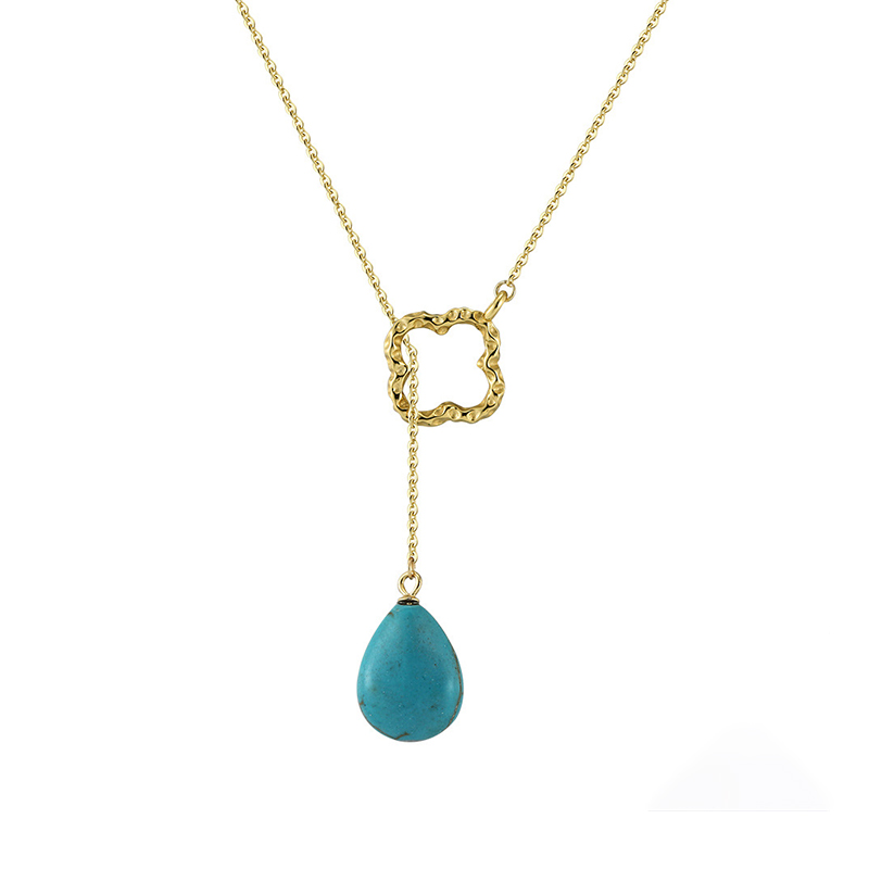 Sotiya Four Leaf Clover Design Pear Cut Turquoise Necklace Sterling Silver