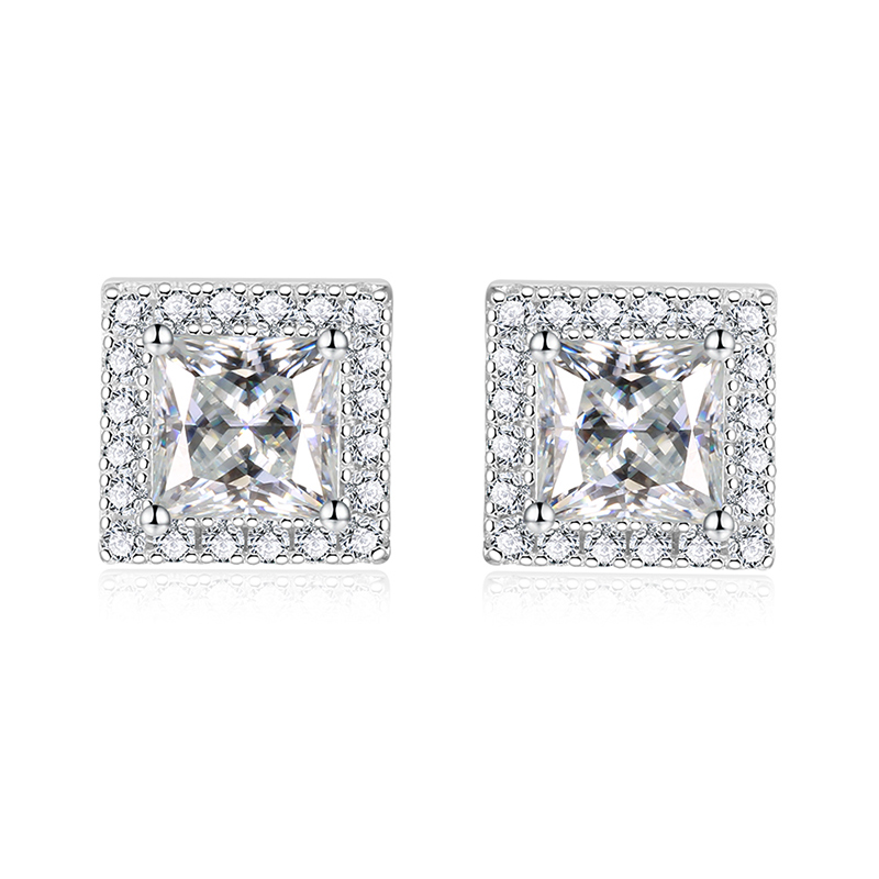 Sotiya Halo Princess Cut Moissanite Stud Earrings Sterling Silver