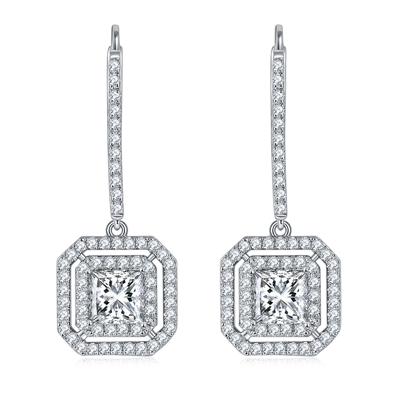 Sotiya Double Halo Princess Cut Moissanite Drop Earrings Sterling Silver