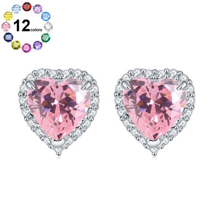 Sotiya Birthstone Heart Cut Halo Stud Earrings Sterling Silver