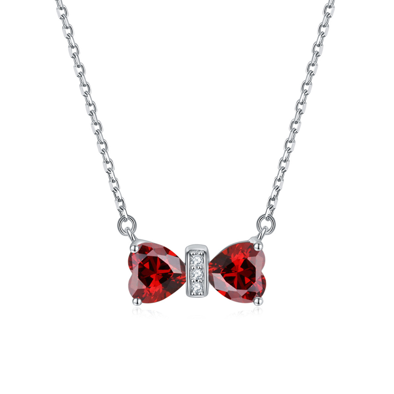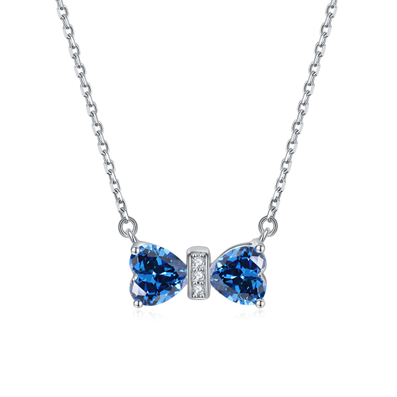 Sotiya 12 Birthstones Bowknot Design Heart Cut Necklace Sterling Silver