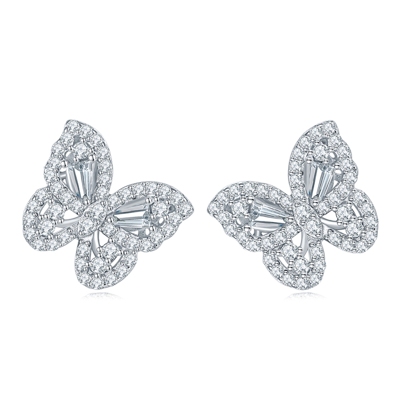 Sotiya Butterfly Design Trapezoid Cut Moissanite Stud Earrings Sterling Silver