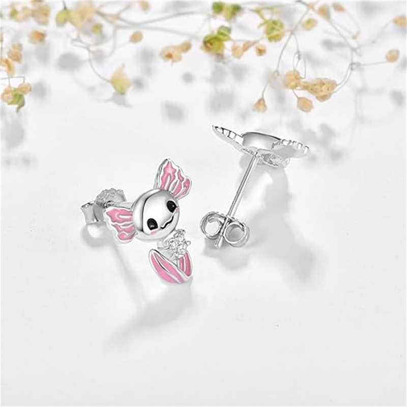 Sotiya Cartoon Axolotl Hug Heart Stud Earrings Sterling Silver
