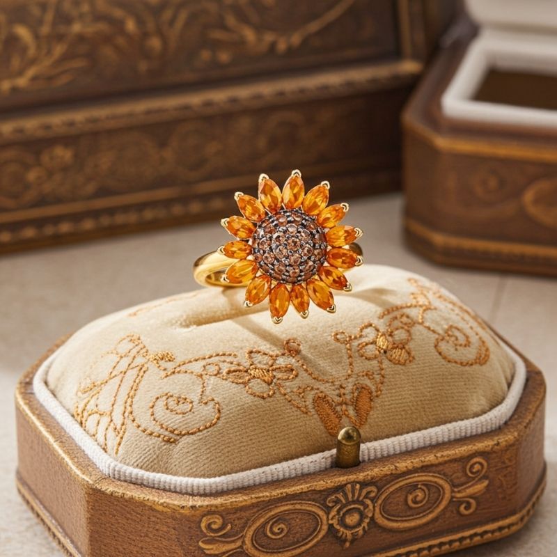 Sotiya Artist Collection Citrine and Coffee Sunflower Cocktail Ring Sterling Silver