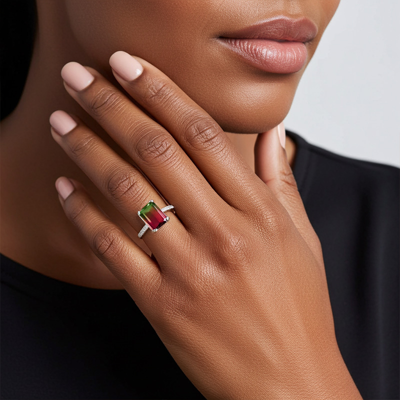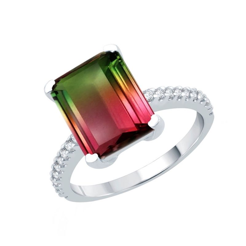 Sotiya Classic Emerald Cut Watermelon Engagement Ring Sterling Silver