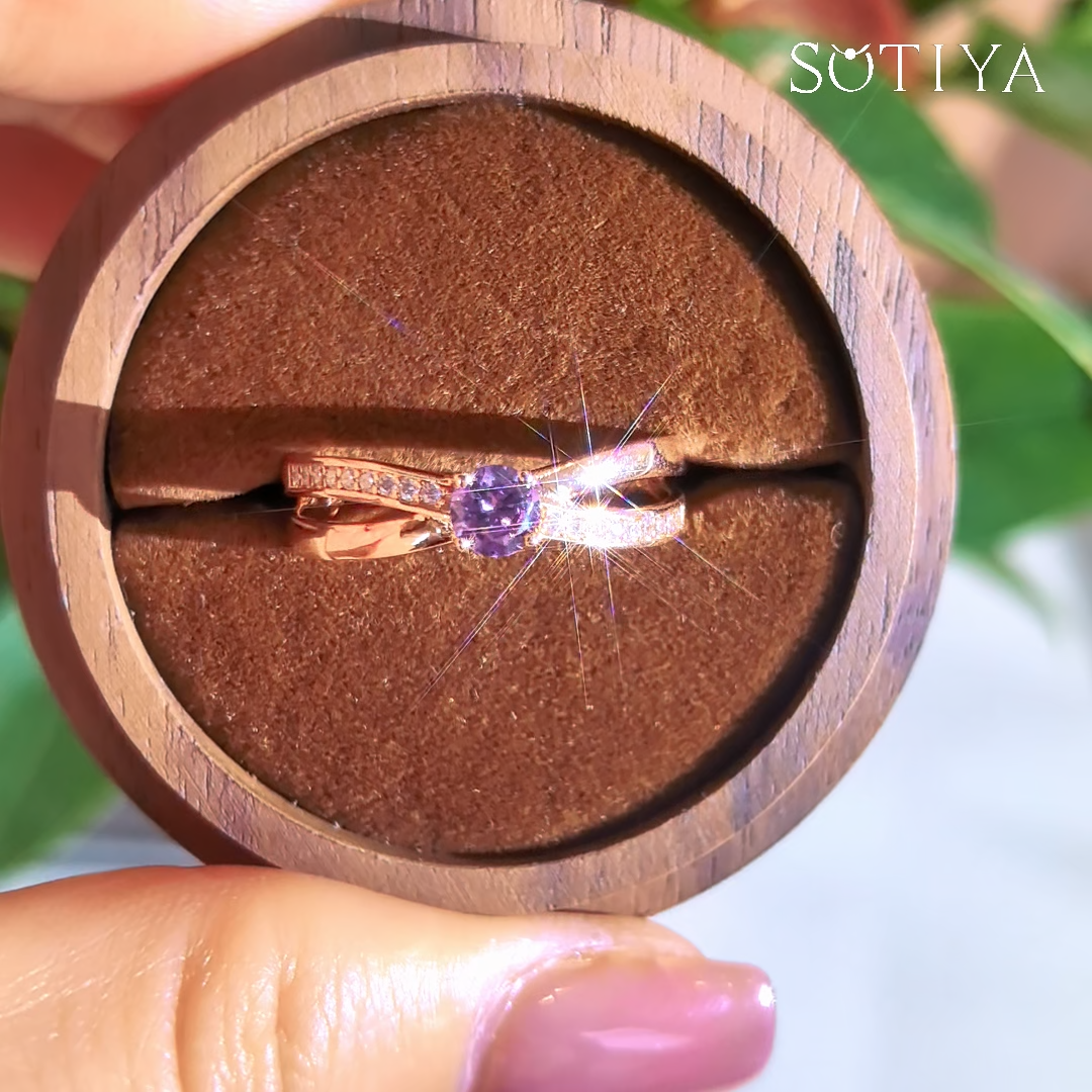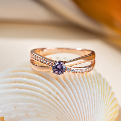 Sotiya Amethyst Crossover Rose Gold Tone Promise Ring Sterling Silver