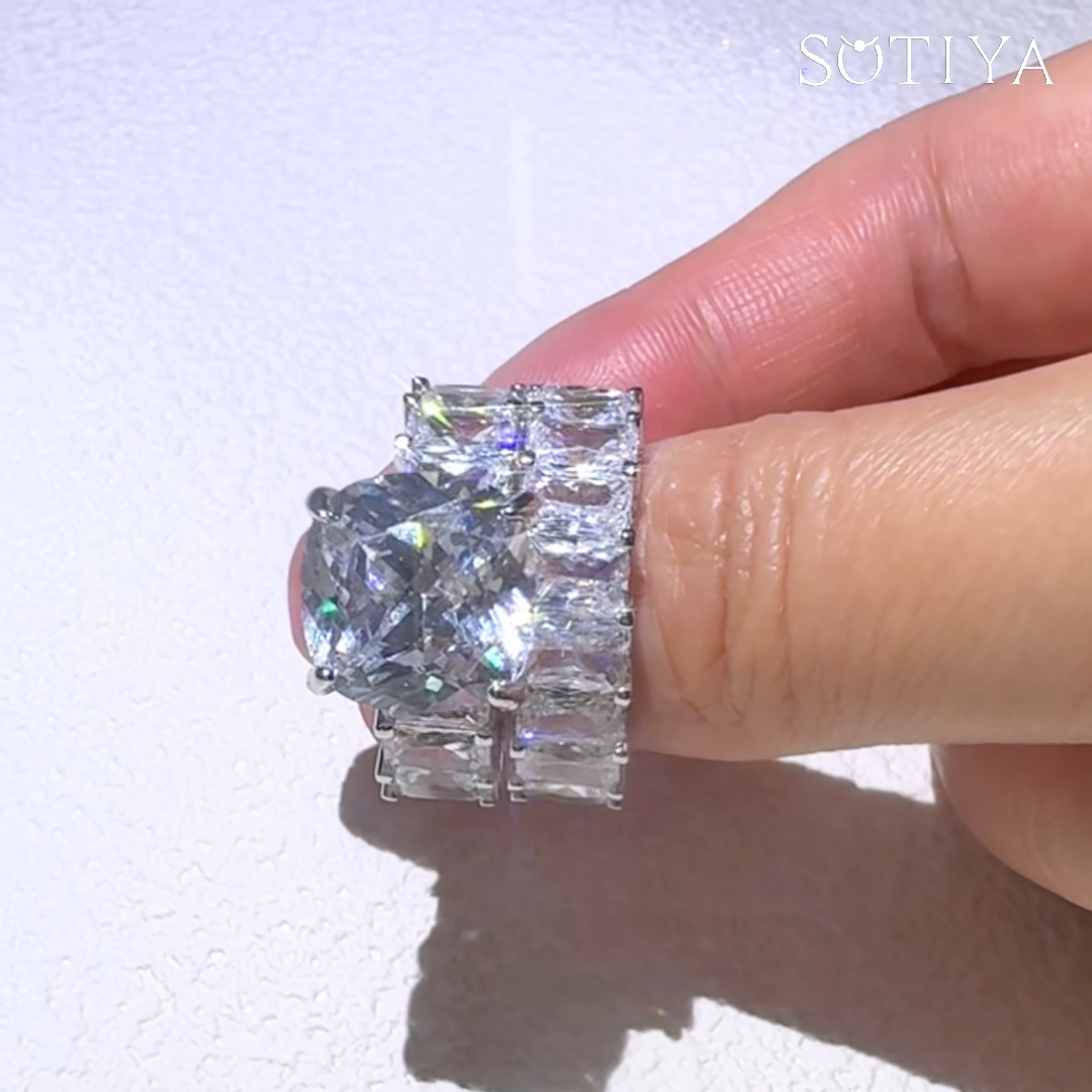 Sotiya Cushion Cut Three Sided Pave Wedding Bridal Ring Set Sterling Silver