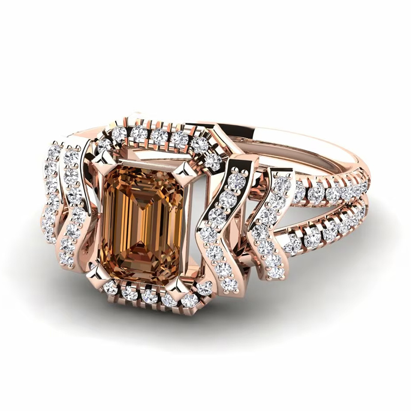 Sotiya Vintage Emerald Cut Coffee Engagement Ring Sterling Silver