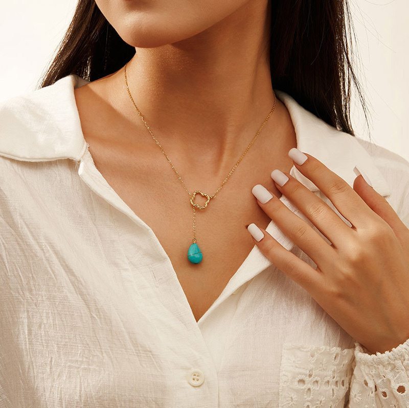 Sotiya Four Leaf Clover Design Pear Cut Turquoise Necklace Sterling Silver