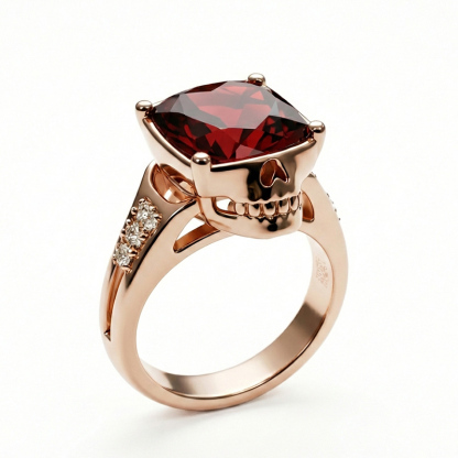 Sotiya Gothic Skull Cushion Cut Garnet Red Cocktail Ring Sterling Silver