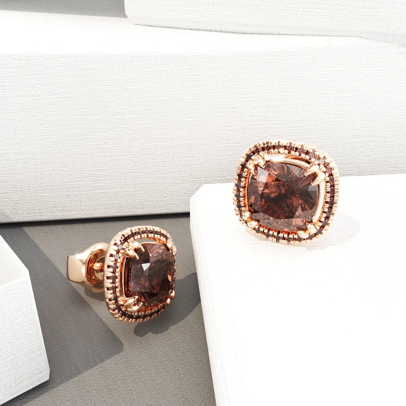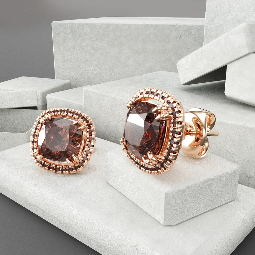 Sotiya Halo Cushion Cut Coffee Stud Earrings Sterling Silver