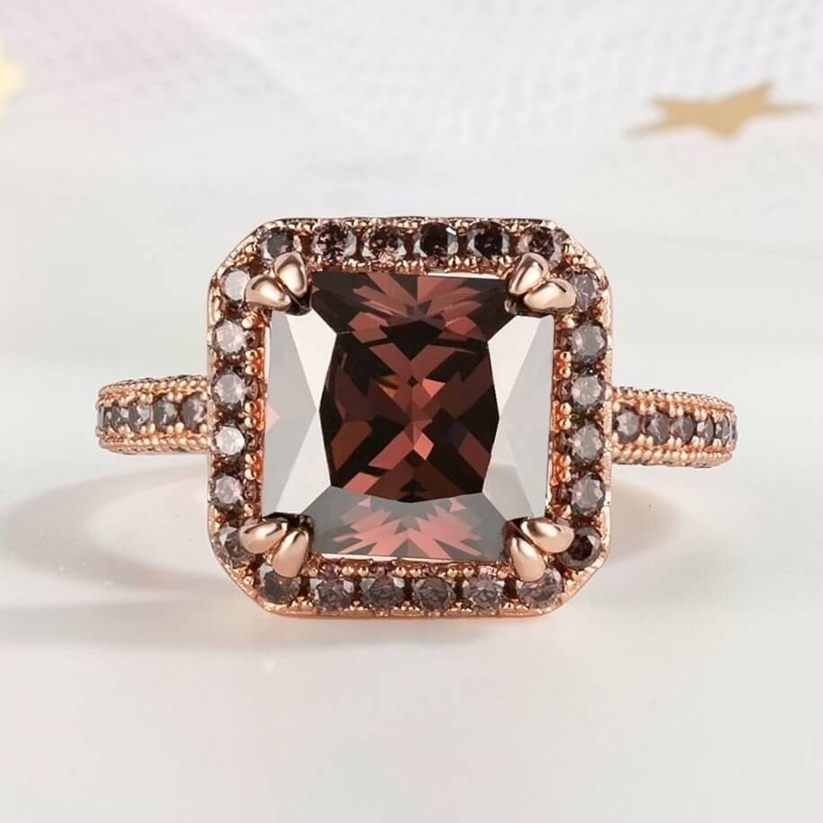 Sotiya Halo Radiant Cut Coffee Engagement Ring Sterling Silver
