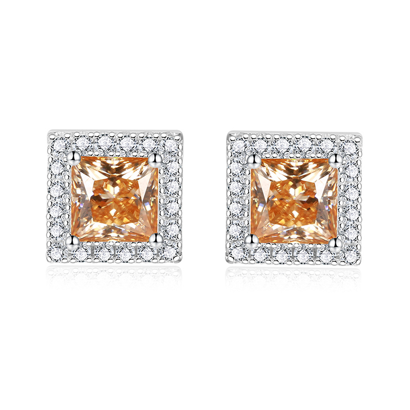 Sotiya Halo Princess Cut Moissanite Stud Earrings Sterling Silver