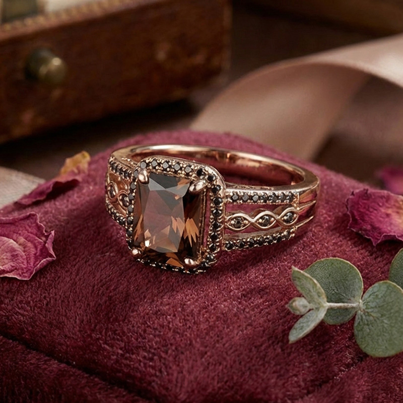 Sotiya Halo Radiant Cut Coffee Engagement Ring Sterling Silver