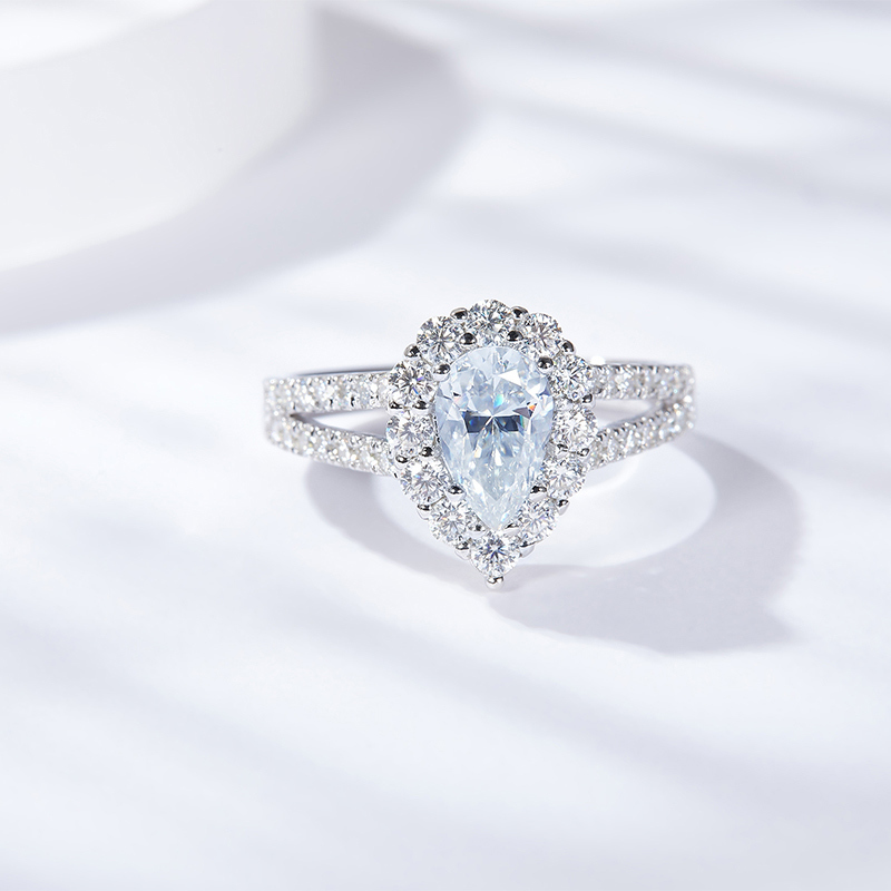 Sotiya Halo Split Shank Pear Cut Moissanite Engagement Ring Sterling Silver