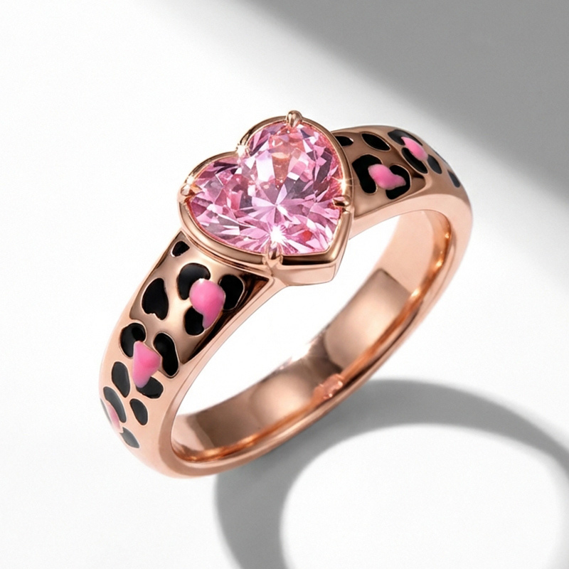 Sotiya Heart Cut Pink Leopard Print Enamel Ring Sterling Silver