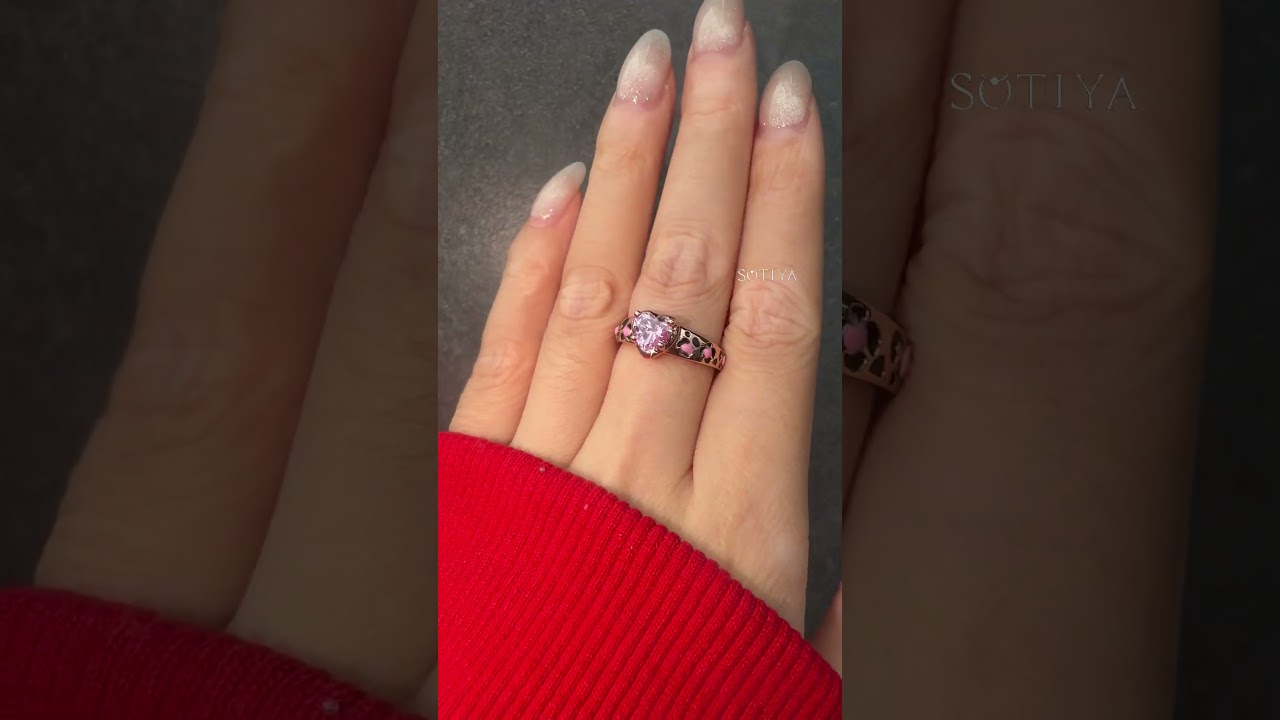 Sotiya Heart Cut Pink Leopard Print Enamel Ring Sterling Silver