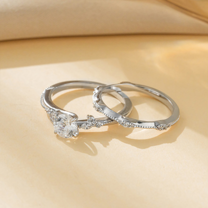 Sotiya Milgrain Vines Round Cut Wedding Bridal Ring Set Sterling Silver