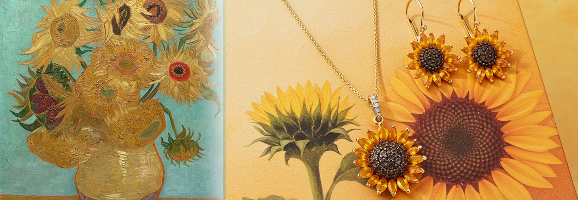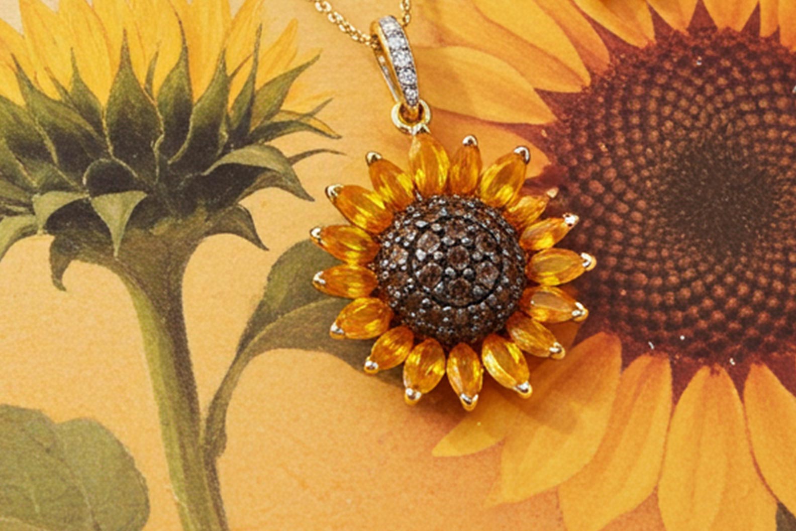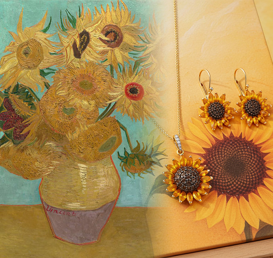 Sotiya Artist Collection Sunflower Round Cut Moissanite Drop Earrings Sterling Silver