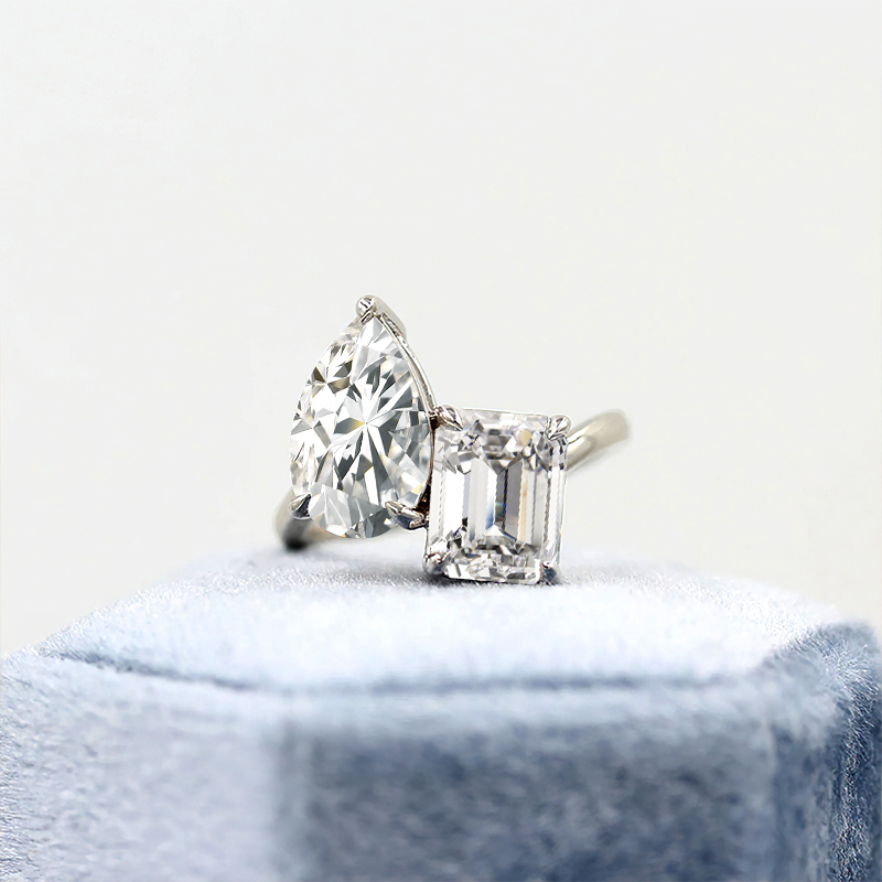 Sotiya Toi et Moi Pear and Emerald Cut Two Stone Engagement Ring Sterling Silver