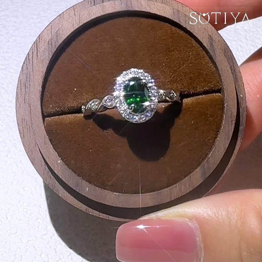 Sotiya Cathedral Twist Halo Oval Cut Emerald Engagement Ring Sterling Silver