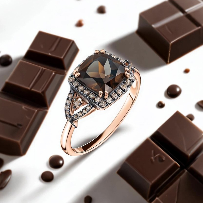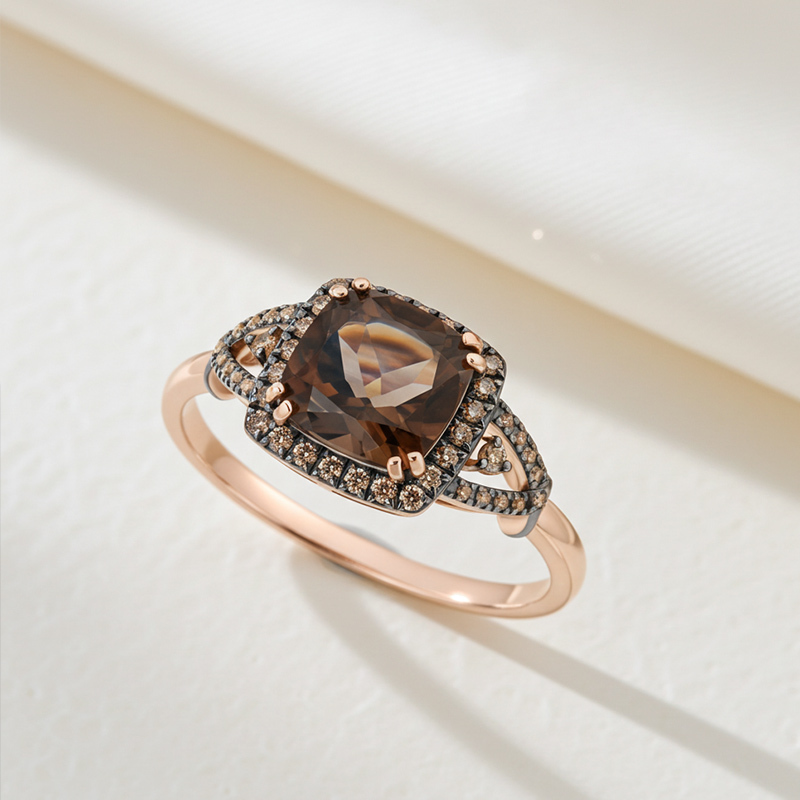 Sotiya Two Tone Halo Cushion Cut Coffee Engagement Ring Sterling Silver