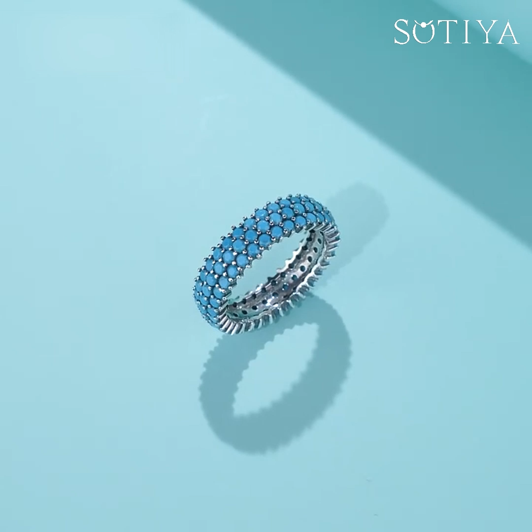 Sotiya Wide Round Cut Turquoise Eternity Ring Sterling Silver