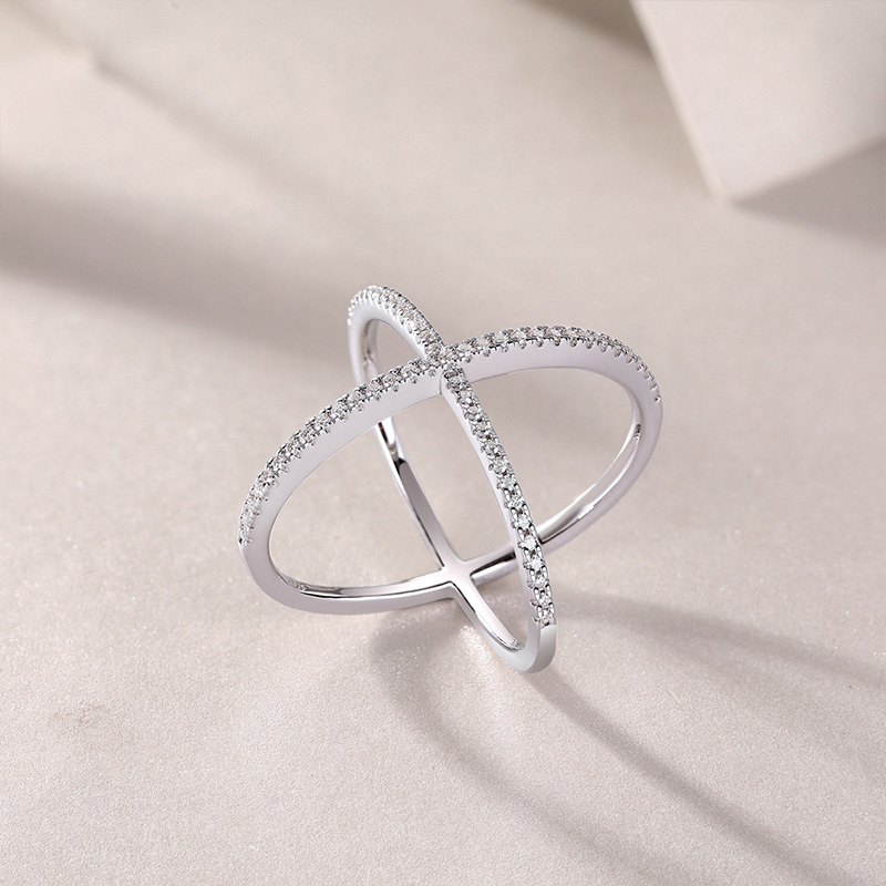 Sotiya X Shape Crossover Round Cut Moissanite Cocktail Ring Sterling Silver